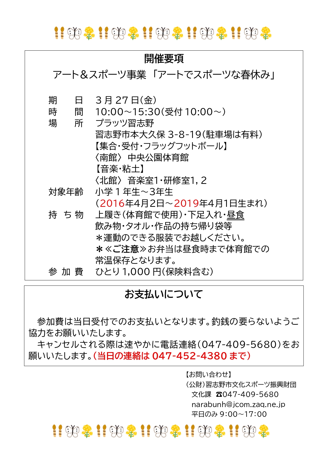 | 主催 | 公益財団法人習志野市文化スポーツ振興財団 |
