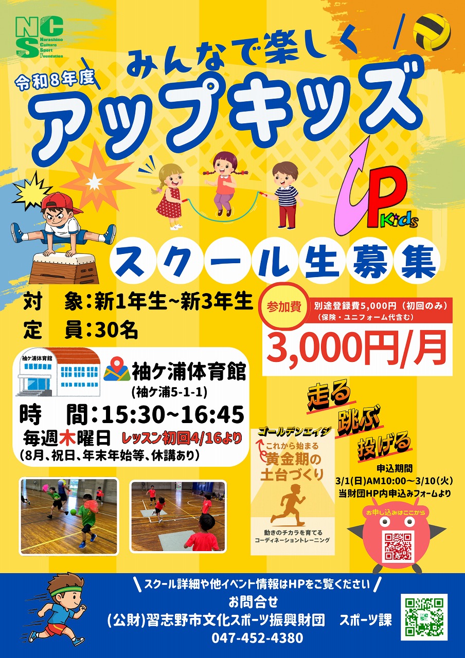 問い合わせ 〒275-0021 習志野市袖ケ浦5-1-1 (公財)習志野市文化スポーツ振興財団 スポーツ課 MAIL narashinosposhin@gmail.com 電話:047-452-4380(平日9時~16時)