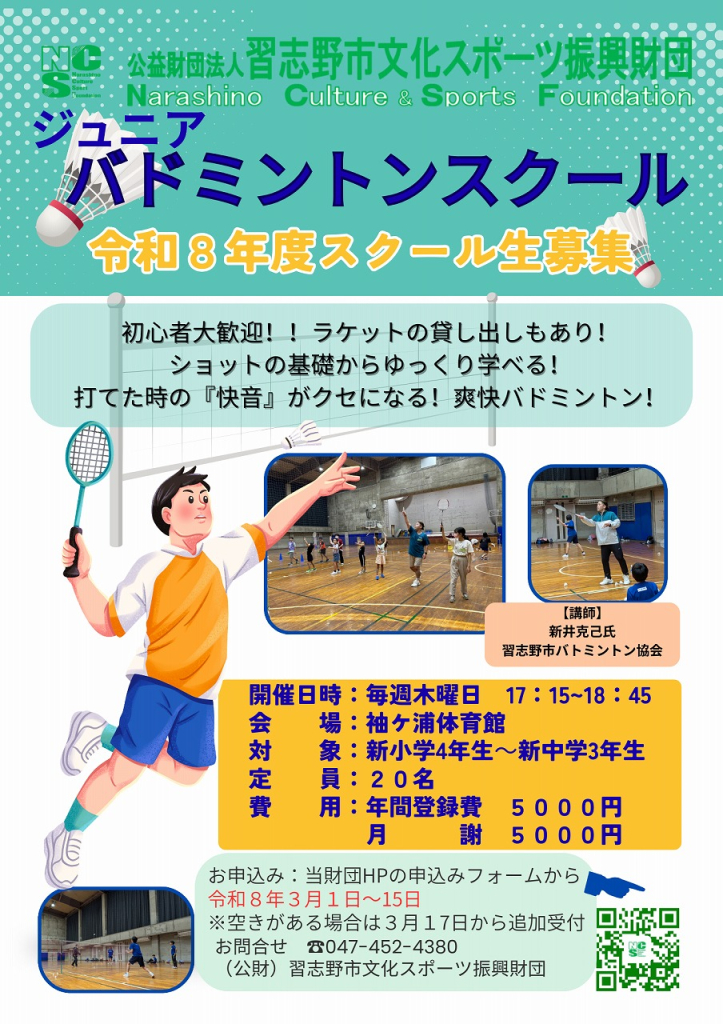 | 講師・出演者等 | 習志野市バドミントン協会 新井克己 氏 協力:習志野市バドミントン協会 |