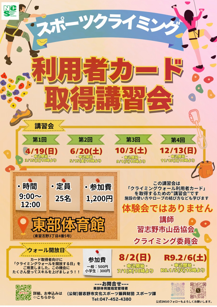 | 講師・出演者等 | 習志野市山岳協会クライミング委員会 |