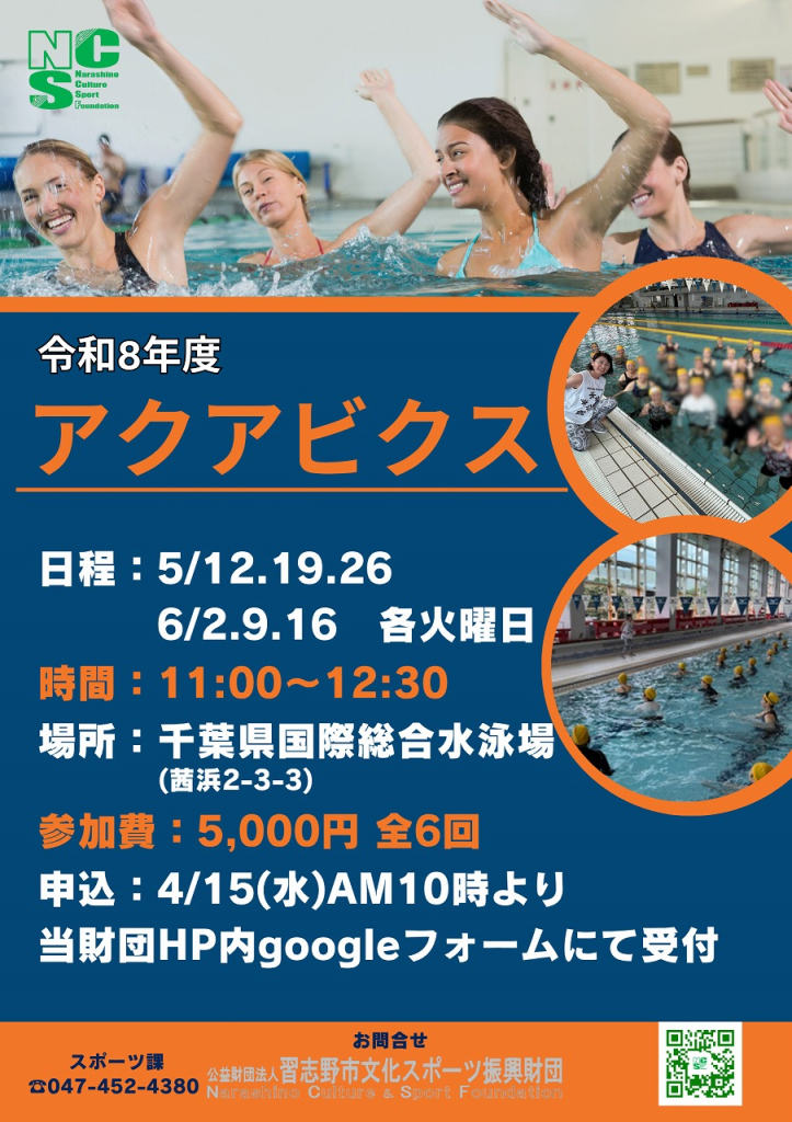 【お問い合わせ】 (公財)習志野市文化スポーツ振興財団 スポーツ課 電話:047-452-4380(平日9:00~16:30)