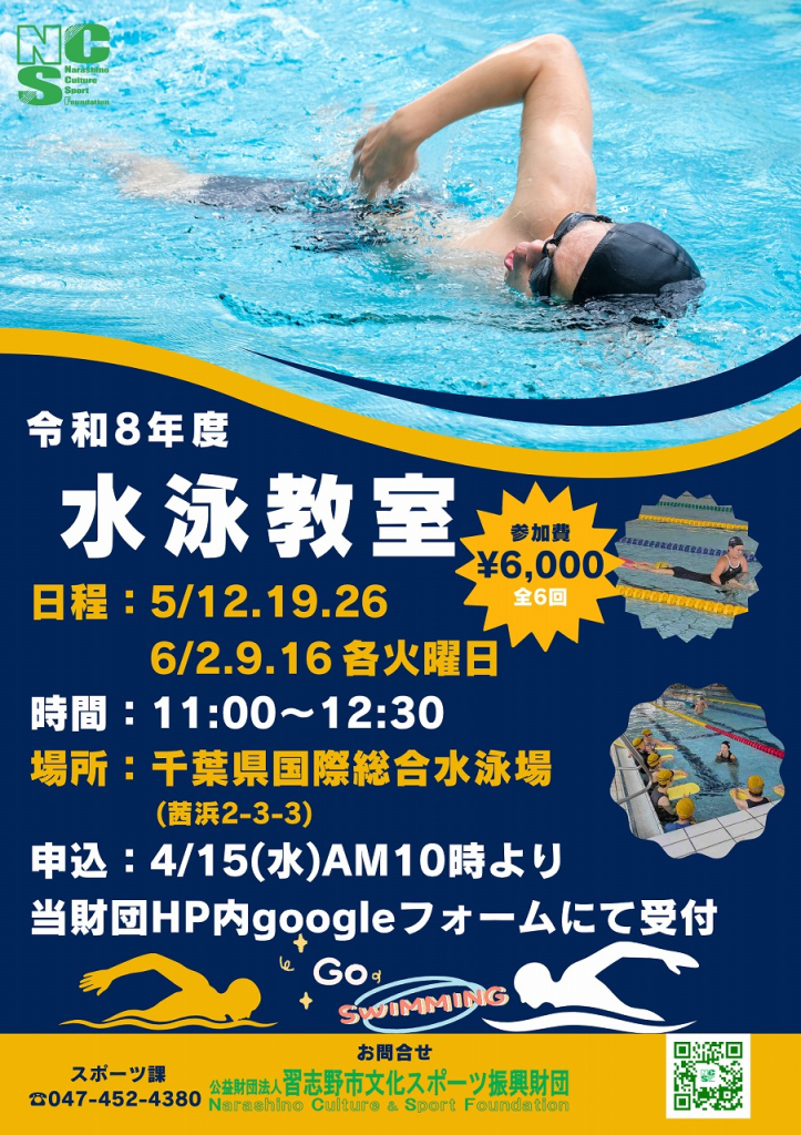 | 期日 | R7.11/18.25.12/2.9.16.23 全6回 各火曜日 場所:千葉県国際総合水泳場 |