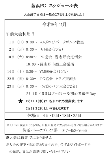 茜浜パークゴルフ場2月スケジュール表